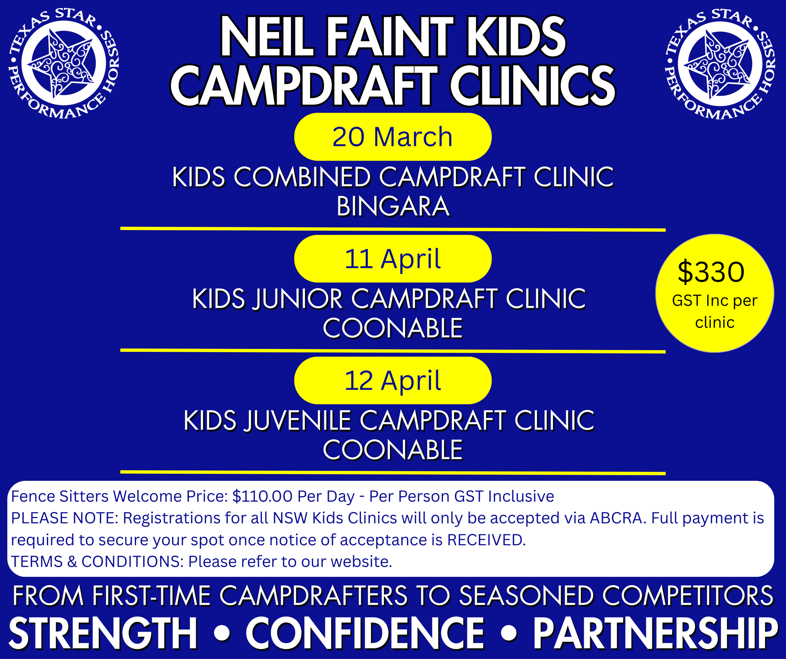 Participation in a Neil Faint Campdraft Clinic qualifies riders for the 2026 TSPH Clinic Participants Campdraft, to be held 20–22 November 2026.